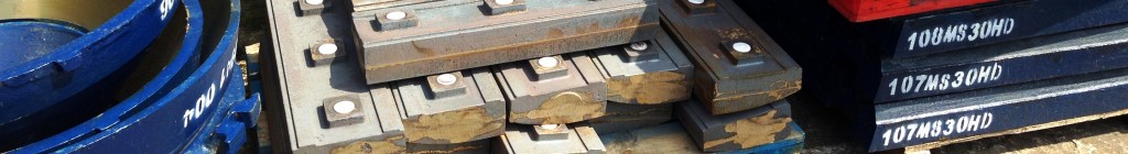 High Chrome iron 24-28% with wear resistant ceramic inserts. This material is only suitable for crushing very abrasive materials with limited feed sizes up to 70mm. Abrasive resistance is extremely good but low resistance to shock loading or tramp metal.